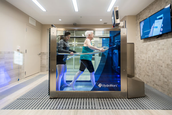 HydroWorx freestanding units are a game-changer for post-surgical recovery. Aquatic therapy provides a safe and comfortable environment that reduces strain and allows patients to ease into post-surgical exercises. Patients experience reduced stress on joints which enables them to increase their range of motion with less pain. The buoyancy of the water gently supports patients making exercises easier. Clinicians utilize aqua socks to protect surgical sites in collaboration with surgeons to customize plans of care.