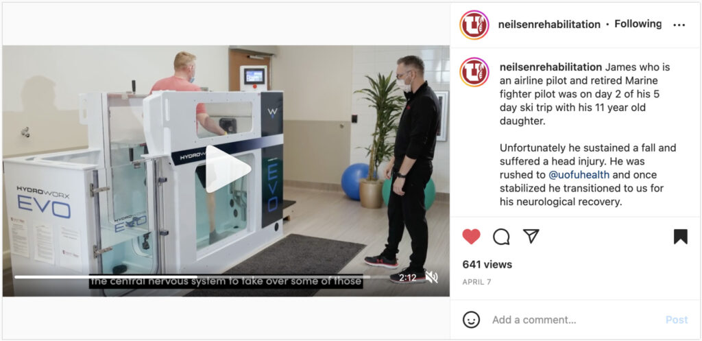“Before we had the HydroWorx EVO, we often rely on a lot of staff, quite honestly, to help facilitate in ambulating an individual patient,” shares Doug Benson, PT, DPT in a video posted on Instagram by Neilsen Rehabilitation.