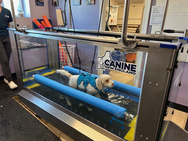 The team at Canine New England have embraced hydrotherapy primarily because of the optimal path to wellness it provides for their patients. One of the most unexpected features that they’ve discovered is the ability to decline the treadmill.