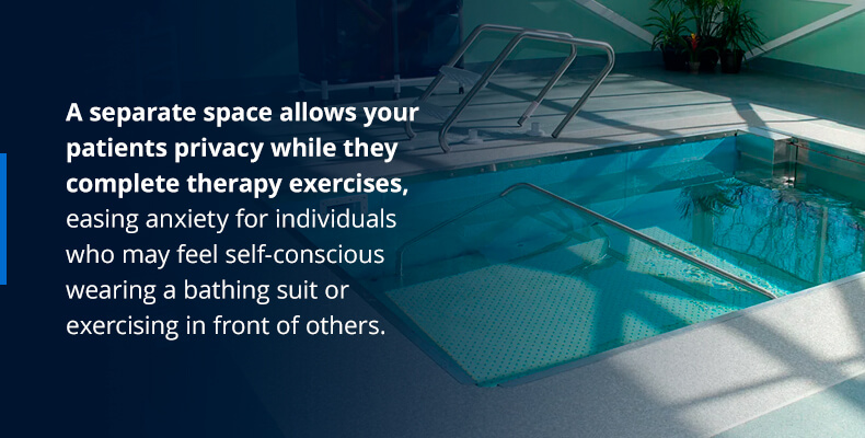 Large therapy pools enable clinics to offer aquatic therapy to one or multiple people during a session. Some pools feature multiple types of therapy equipment or floor levels in one pool. With a large therapy pool, facilities may consider offering group fitness classes to increase their revenue stream.